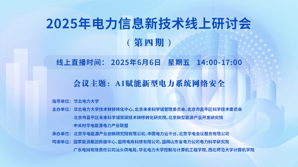 2025年電力信息新技術(shù)線(xiàn)上研討會(huì)(第四期)一、講座主題:AI賦能新型電力系統(tǒng)網(wǎng)絡(luò)安全 二、講座時(shí)間:2025年6月6日 星期五 14:00-17:00 三、講座地點(diǎn):線(xiàn)上直播:https://t19c5.xetlk.com/sl/3J08JD(聯(lián)系人:雷捷婷15301327986) 四、主講人信息: (一)主講人:丁志成 國(guó)家能源集團(tuán)數(shù)據(jù)中心...主講人:丁志成、彭天齊、張昊、林裕新、李建彬、楊小東時(shí)間:2025-06-06 14:00地點(diǎn):線(xiàn)上講座 -